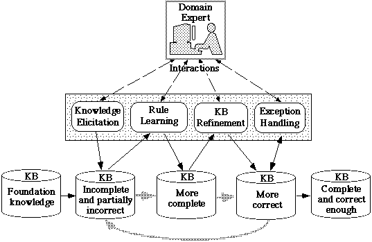 Figure 3 shows the most important processes of the proposed tutoring-based knowledge acquisition. They are Knowledge Elicitation, Rule Learning, KB Refinement, and Exception Handling.